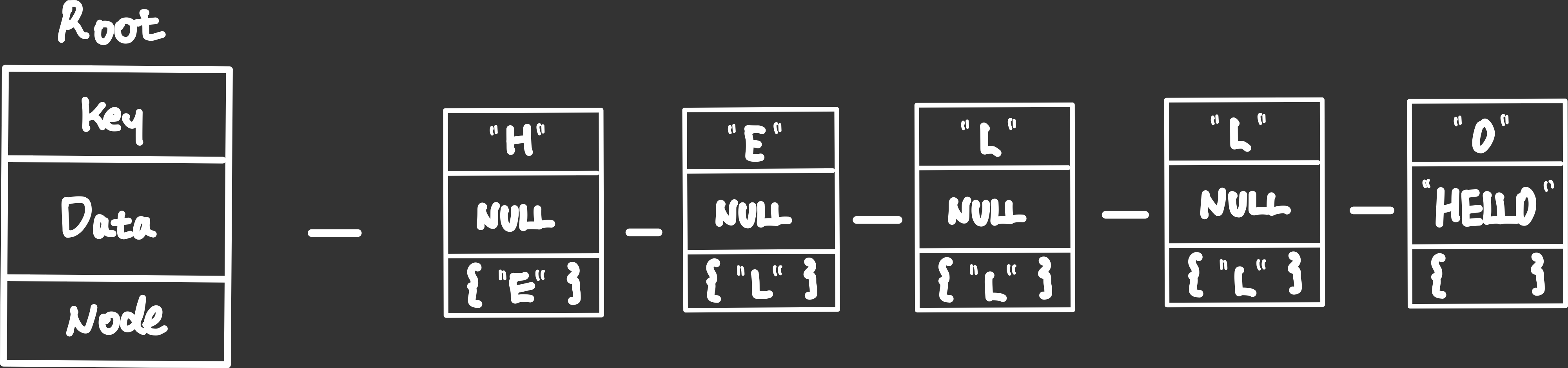 - 마지막 "L" 노드의 data를 확인, 끝 표시가 있으면 단어가 있다고 판단(탐색 끝)