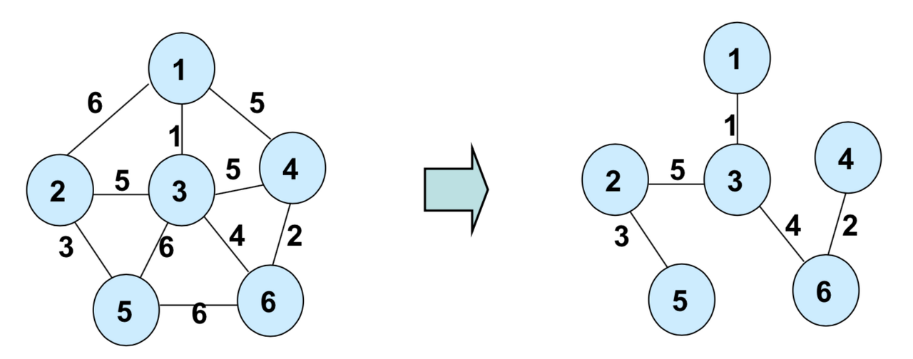 - 모든 정점을 포함하면서 사이클이 없는 그래프